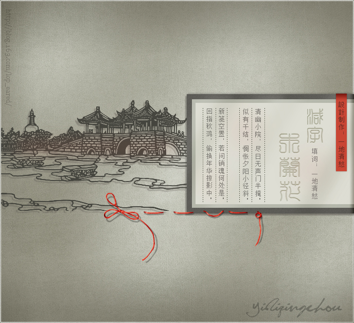 【减字木兰花】填词:一地清愁 幽幽深院,尽日无声門半掩。 似有千结,惆悵夕陽小径斜。 新笺空置,若问销魂何処是? 回指秋鸿,偷换年華掠影中。 |